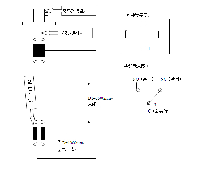 連桿浮球液位開(kāi)關(guān)多點(diǎn)位控制示意及接線(xiàn)圖